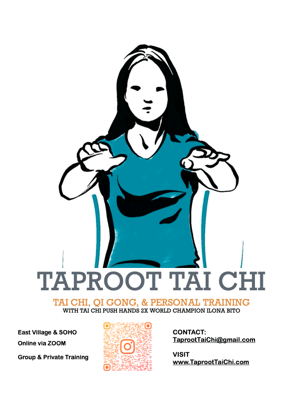 Sundays in Soho Resume 4-6PM June 2nd, 9th, 16th, 23rd (no class 6/30). These classes will now be hybrid, available via zoom. As usual, please RSVP by e-mailing taproottaichi@gmail.com. Wednesdays in Seward Park are still on the calendar, but I may not be there without RSVP.